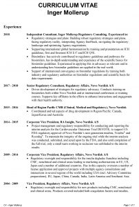 2018: Independent Consultant, Inger Mollerup Regulatory Consulting. Experienced in: